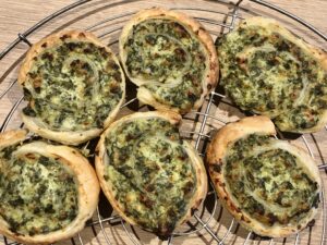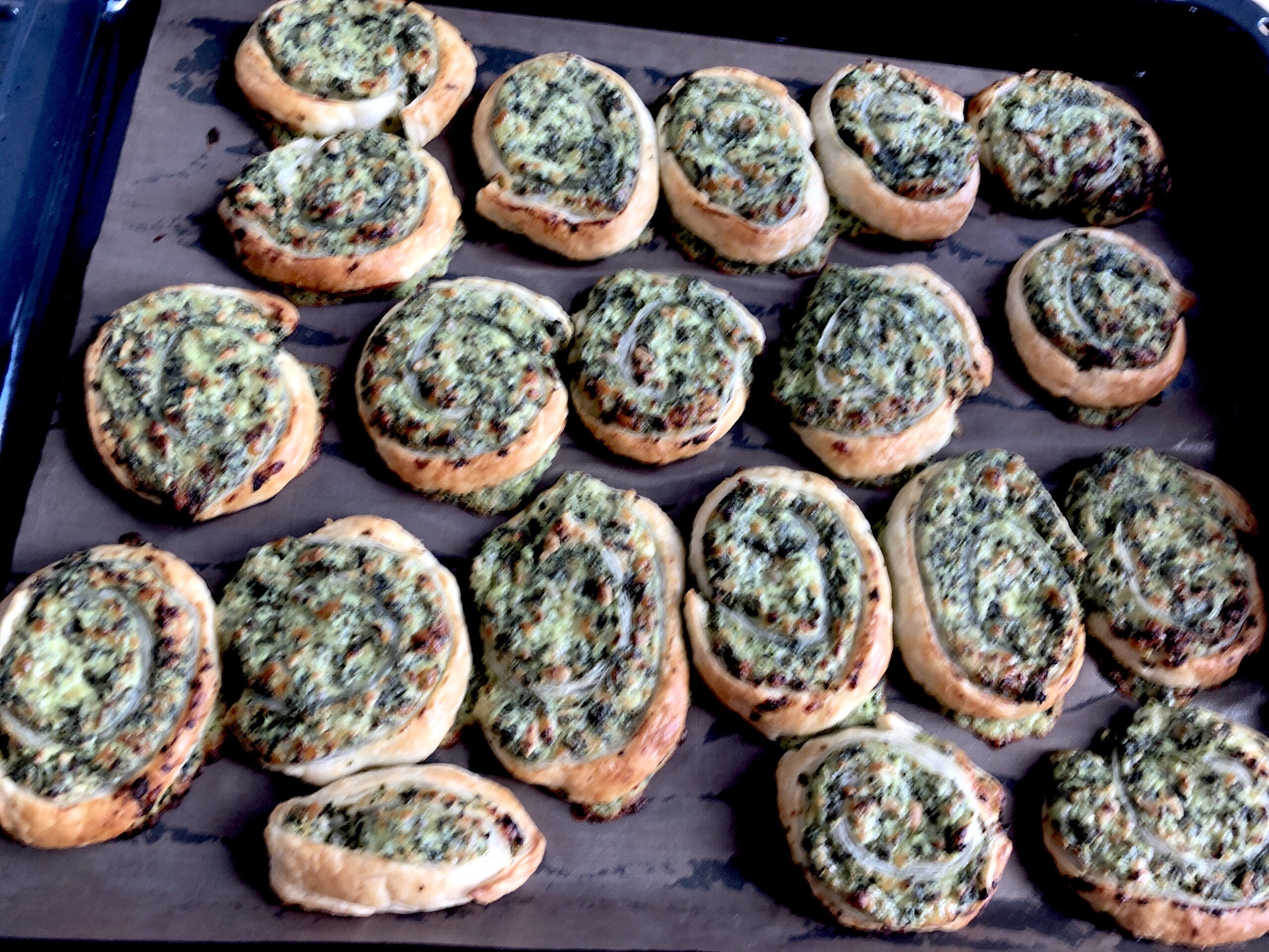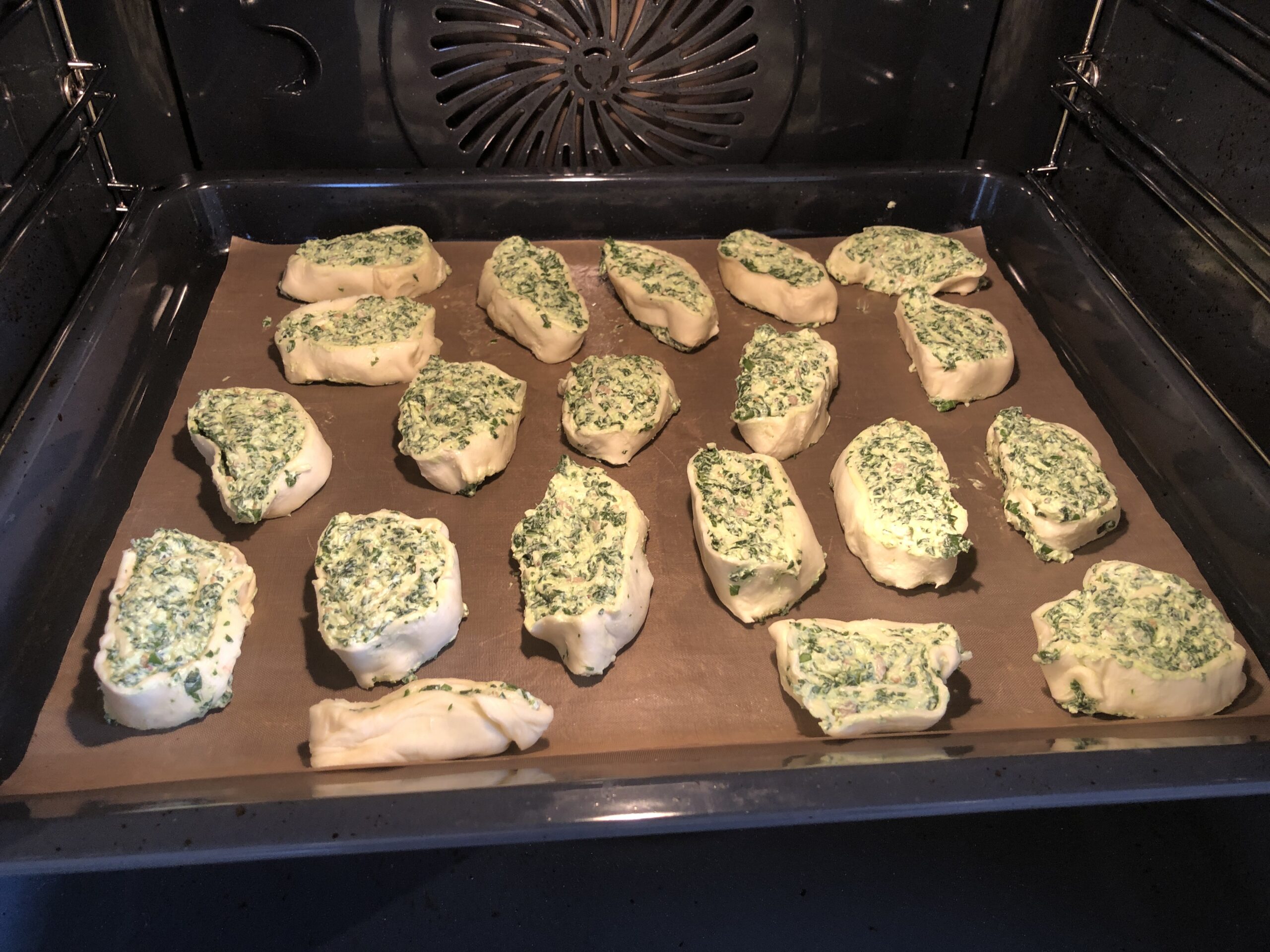 Auf das Backblech legen und bei 200 Grad Umluft backen, bis der Blätterteig schön braun ist – ca 20 Minuten.
