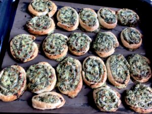 Wenn ich zu dieser Zeit aus meinem Küchenfenster schaue, freue ich mich ganz besonders : der Waldboden ist kritzegrün – alles voller Bärlauch. Das erste frühlingshafte Grün auf dem Teller. Viele Menschen sehen das genauso – der Wald ist voller Sammler. Für mich als begeisterte Köchin ist es natürlich klar, dass jedes Jahr neben den erprobten Rezepten mindestens ein Neues dazu kommt. Heute habe ich die Bärlauchschnecken kreiert, Schwester und Schwager und wie immer mein Mann (Vorkoster und Webmaster) haben gekostet und waren angetan – ich auch. Schnell gemacht und seeehr lecker!