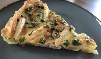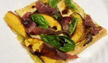 Als ich dieses Rezept las, wusste ich sofort: das schmeckt köstlich! Blätterteig, Brie, reife Früchte, Honig, Basilikum – hmmm. Ein Genuss, schön anzusehen und schnell gemacht: zum Apero oder als Vorspeise. Die Tarte sollte sofort warm gegessen werden. Ich habe