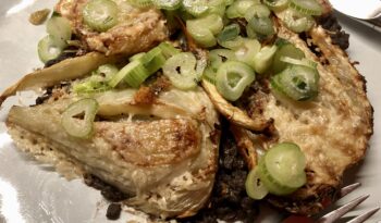 Fenchel ist ein so wunderbares Gemüse, vor Allem wenn er komplett verarbeitet wird wie in diesem Rezept. Weich und knusprig im Ofen geröstet, die knackigen Stiele extra als kleiner Salat obenauf. Ich habe ihn auf einem Bett aus schwarzen Linsen