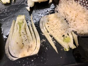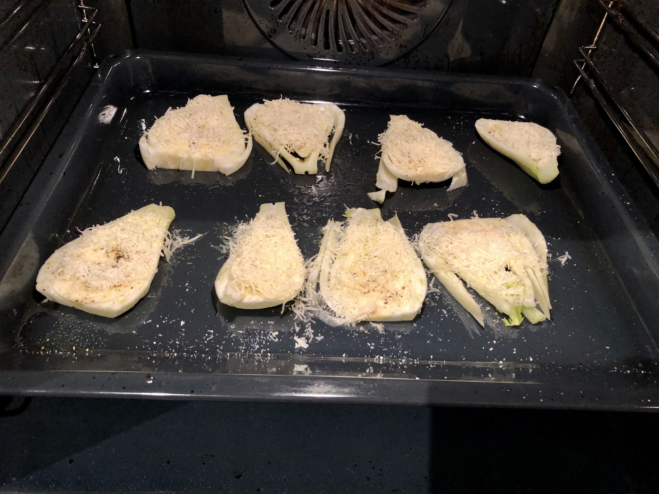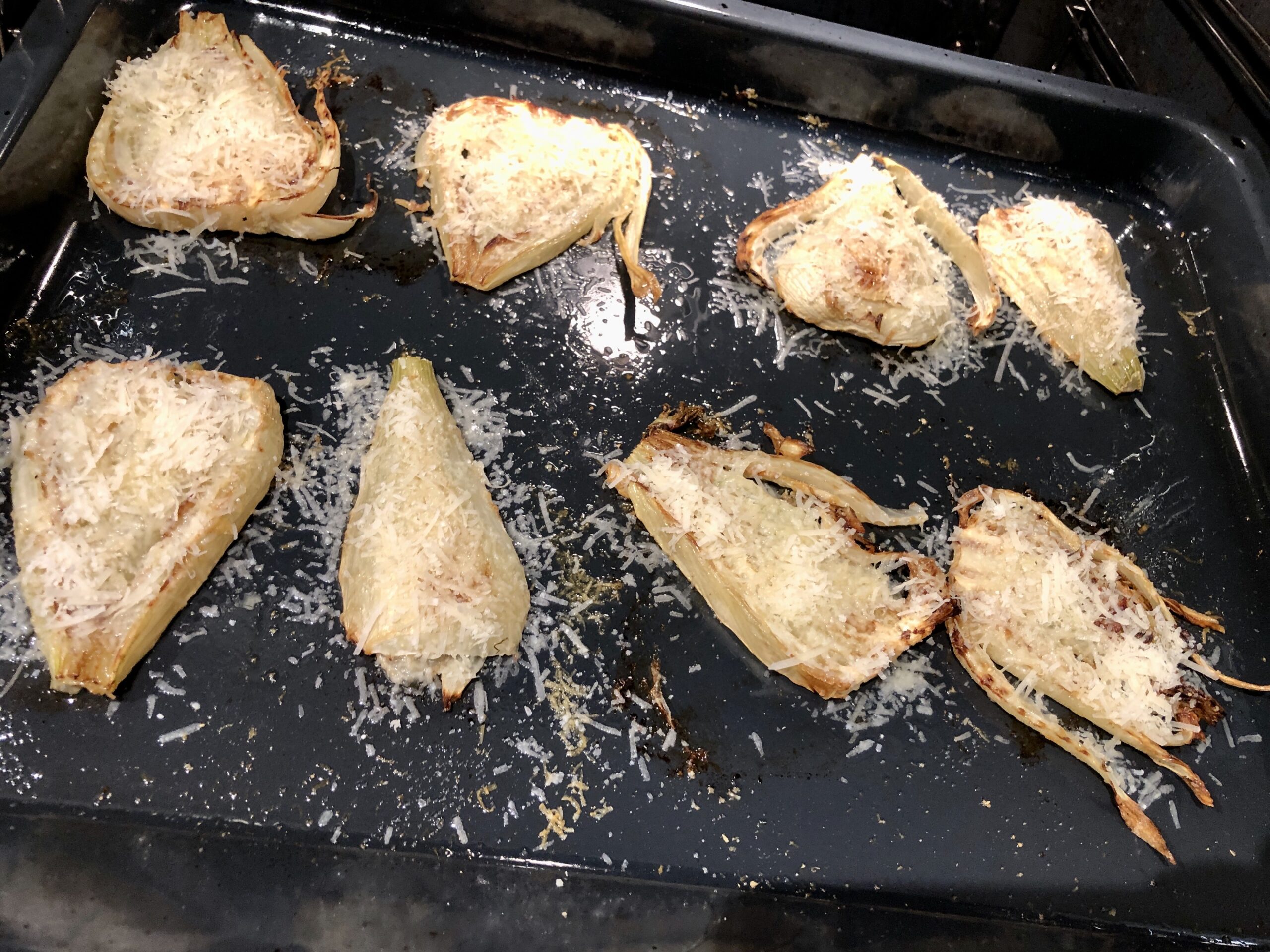 Wieder im Ofen für weitere 10 – 15 Minuten rösten, bis die Oberfläche goldbraun und der Fenchel weich ist.