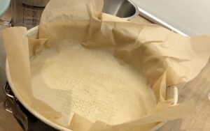 Diese Soße probieren und eventuell nachwürzen. Eine Springform mit Backpapier auskleiden, so dass die Ritze zwischen Boden und Rand verschlossen ist.