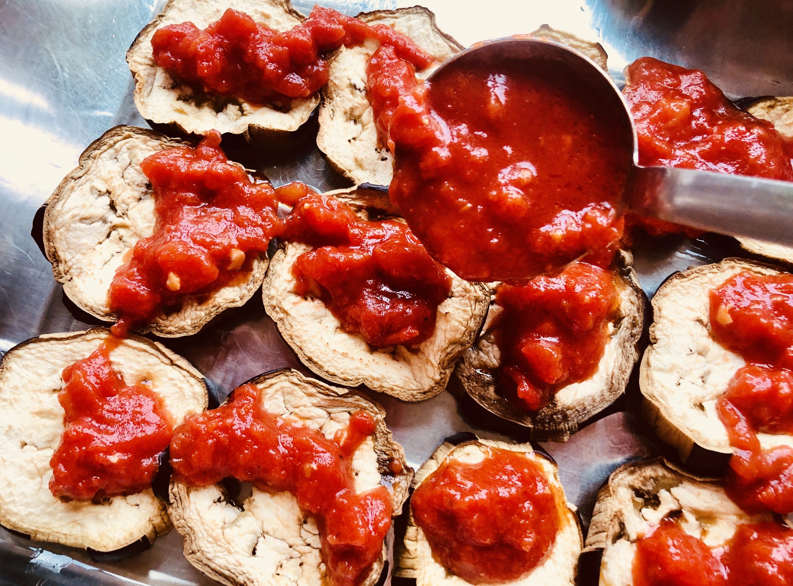 Mit einem Drittel des Tomatensugos bedecken.