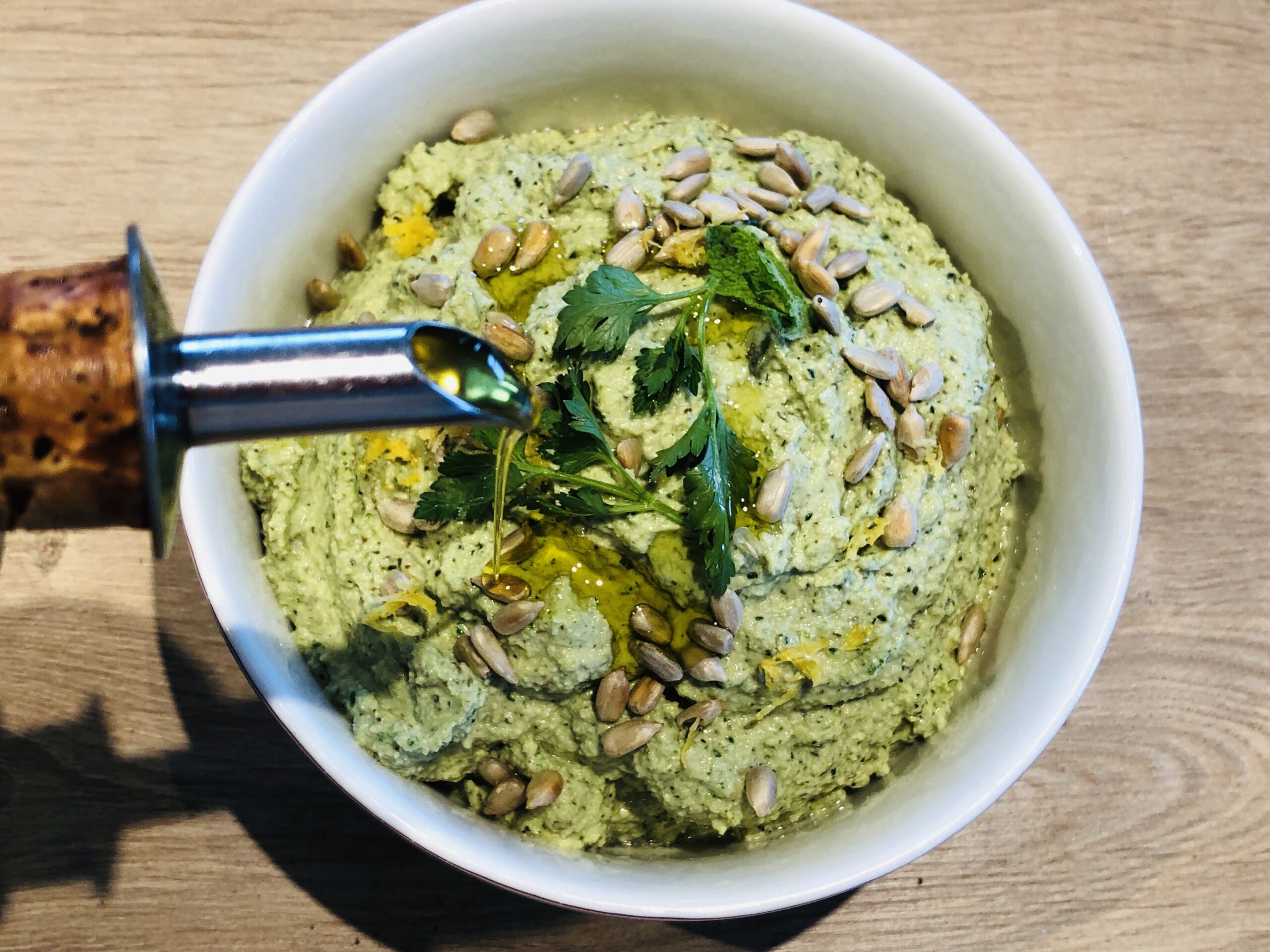 Aufstriche sind schnell gemacht, kreativ und man hat immer was Leckeres, Gesundes im Haus. Die allermeisten sind sogar vegan. Wie dieser hier: rohe Zucchini, Sonnenblumenkerne, Kräuter, Gewürze und Öl. Dass man ihn nicht so lange aufheben kann, macht garnichts, denn er schmeckt soo gut!