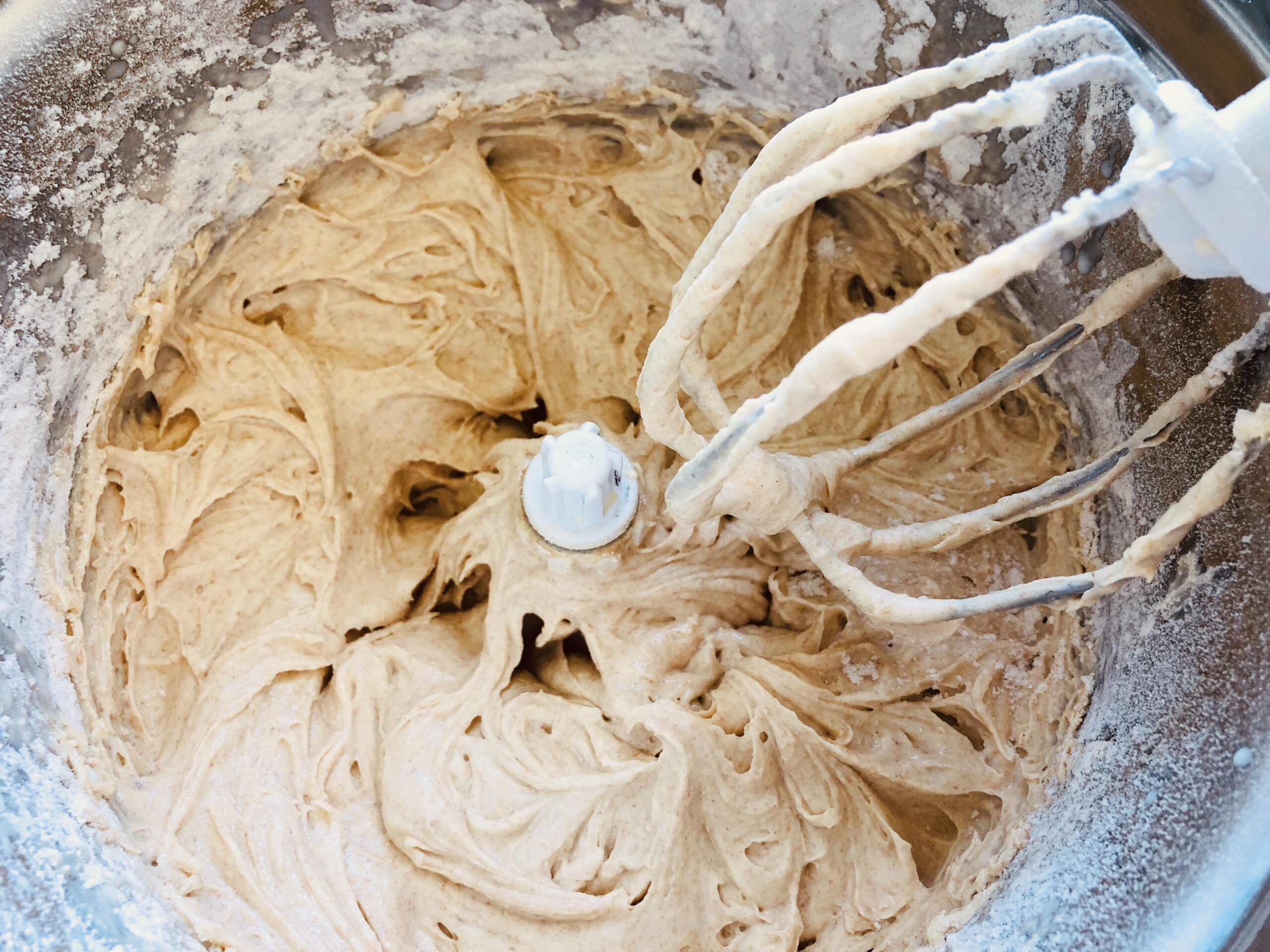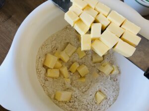 Achtung: Mehl, Zucker und Butter werden in zwei Massen gebraucht und deshalb aufgeteilt.