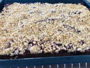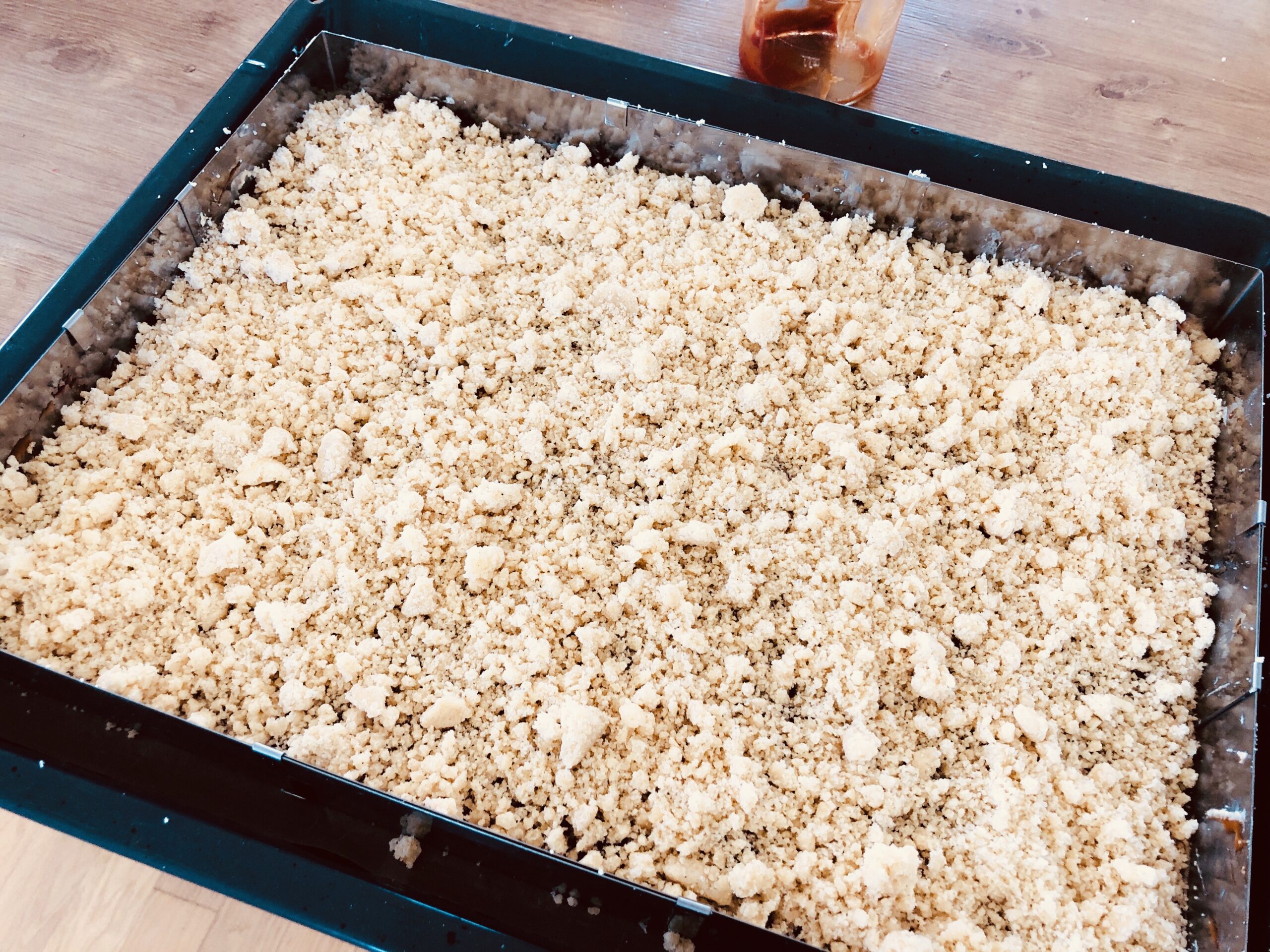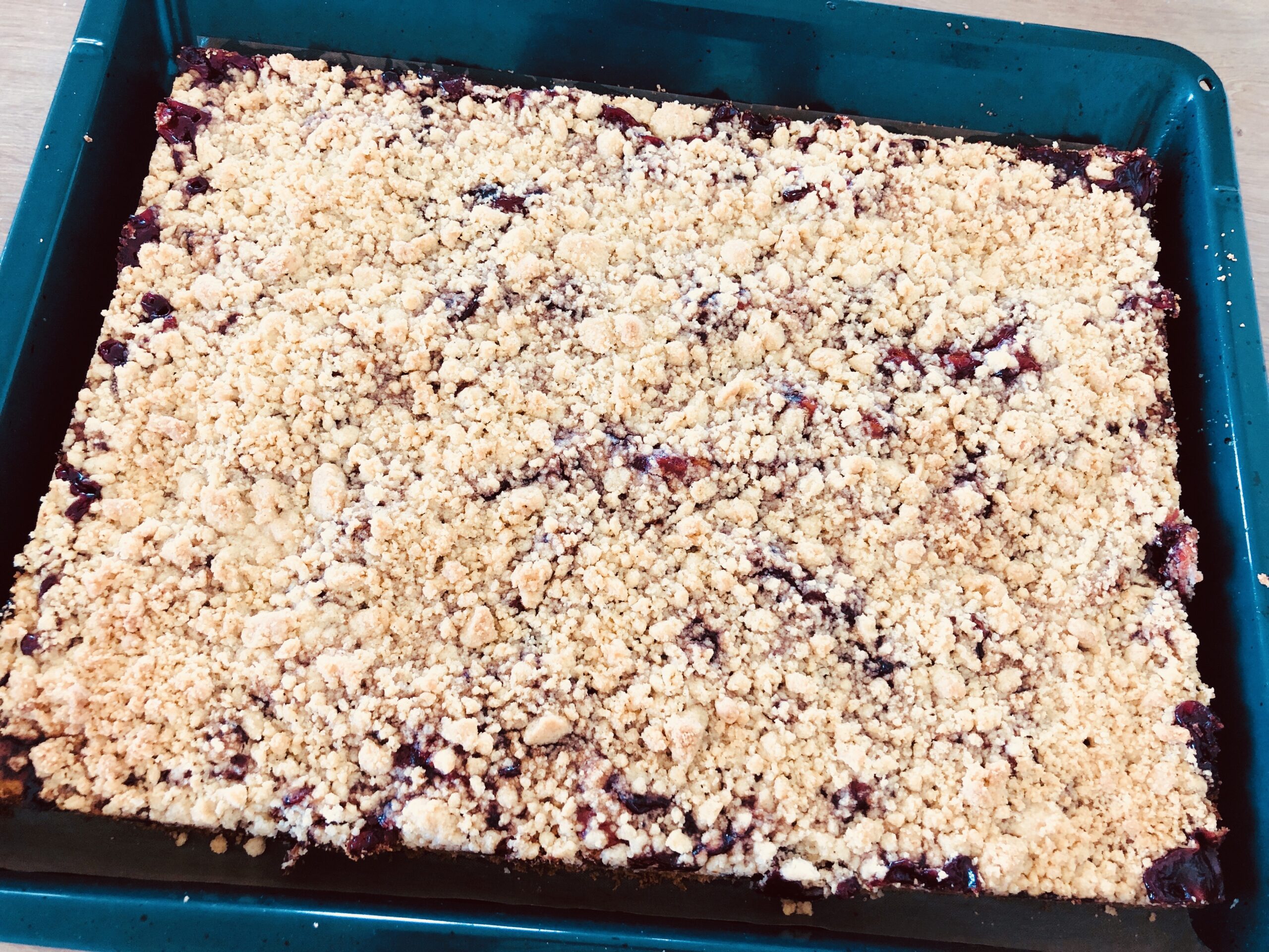 Bei 180 Grad Umluft ca 30 Minuten backen, bis die Streusel leicht gebräunt sind.