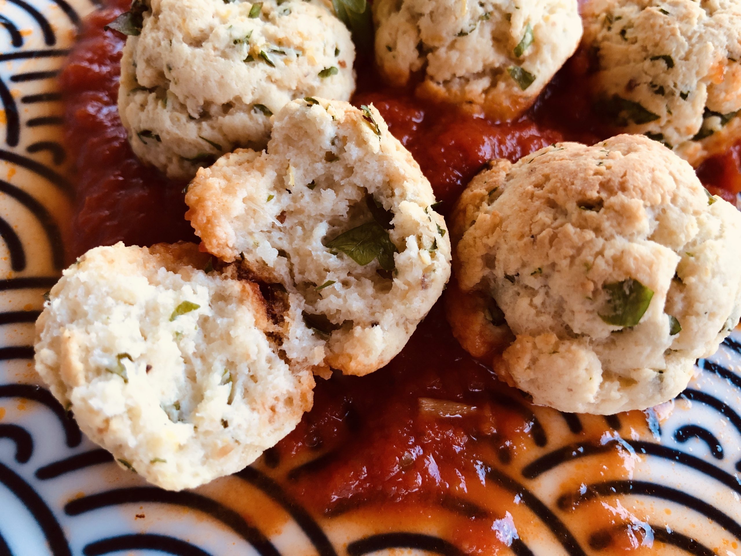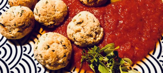 Im Vorgeheizten Backofen bei 180 Grad goldbraun backen, das dauert 15-20 Minuten. In der Zwischenzeit die Tomatensoße machen oder erhitzen. Einfach und köstlich!