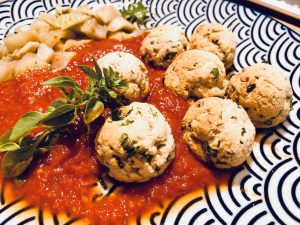 Italienische Rezepte sind mir doch immer die liebsten… Als ich das sah, habe ich es sofort markiert, Zutaten, die ich mag und schnelle Zubereitung. Es ist ein Rezept von Gennaro Contaldo, den ich auf youtube gerne sehe. Zitronenabrieb mit Ricotta und das auf einer würzig-roten Tomatensoße – ist schön und schmeckt gut! Die Tomatensoße kann man ganz schnell aus einer kleinen Dose von guten Tomatenstücken, etwas Knoblauch und etwas mehr Basilikum kochen. Oder man nimmt ein Glas fertige, nur die beste! Ich liebe Bombolinosauce von la Vialla. Oft habe ich auch noch selbst gemachte im Tiefkühler für solche Fälle.