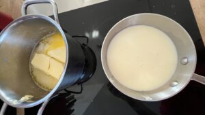 - Milch und Butter (incl Schmalz) erwärmen