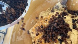 - Am Vorabend Rosinen und Korinthen waschen, trocknen und in Rum einlegen.