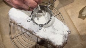 Unseren Stollen von 2020 – gebacken am 10. November – haben wir am 6. Dezember aufgeschnitten. Er war köstlich!