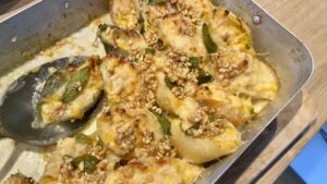 Aus Erfahrung klug geworden, habe ich diesmal die Nudeln einzeln abgekühlt und eingeölt, so klebte nichts. Im Video sehr gut zu sehen. Für ein Gericht, dass so viel hermacht ist es eigentlich schnell gemacht.